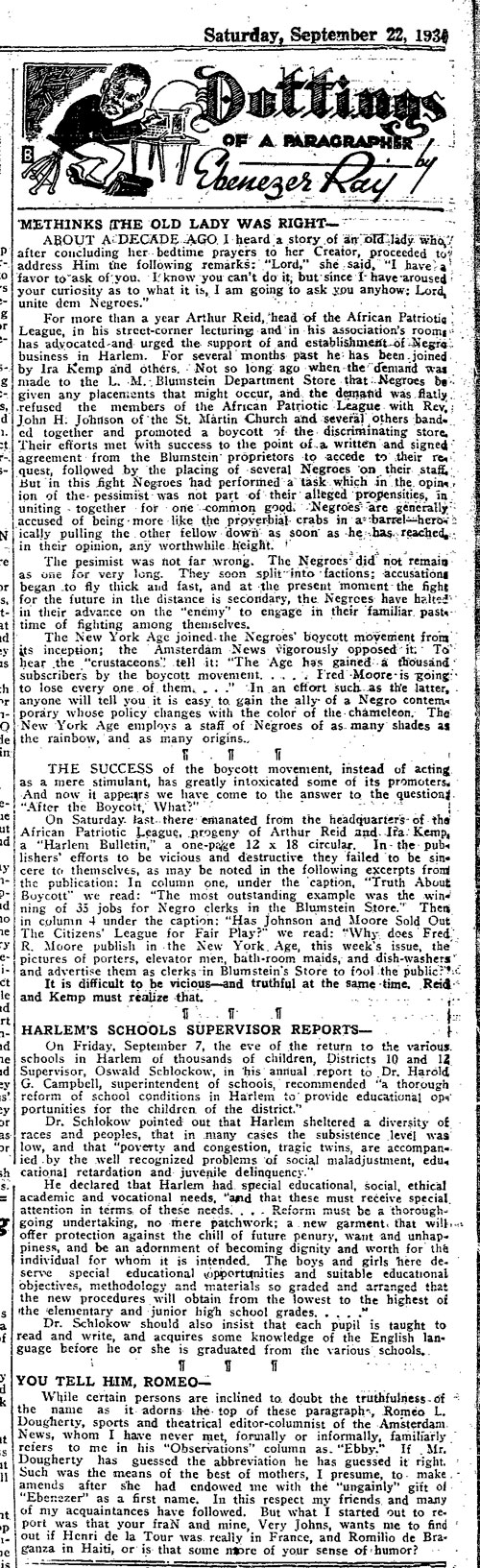 Looking for something fresh to write about on Election Day, I searched my father’s columns for wisdom from the past. A footnote in a column published in the New York Age on November 3, 1934, implored readers to elect “Mrs. Eunice Carter” to the New York State Assembly. The name had a familiar ring. Five […]