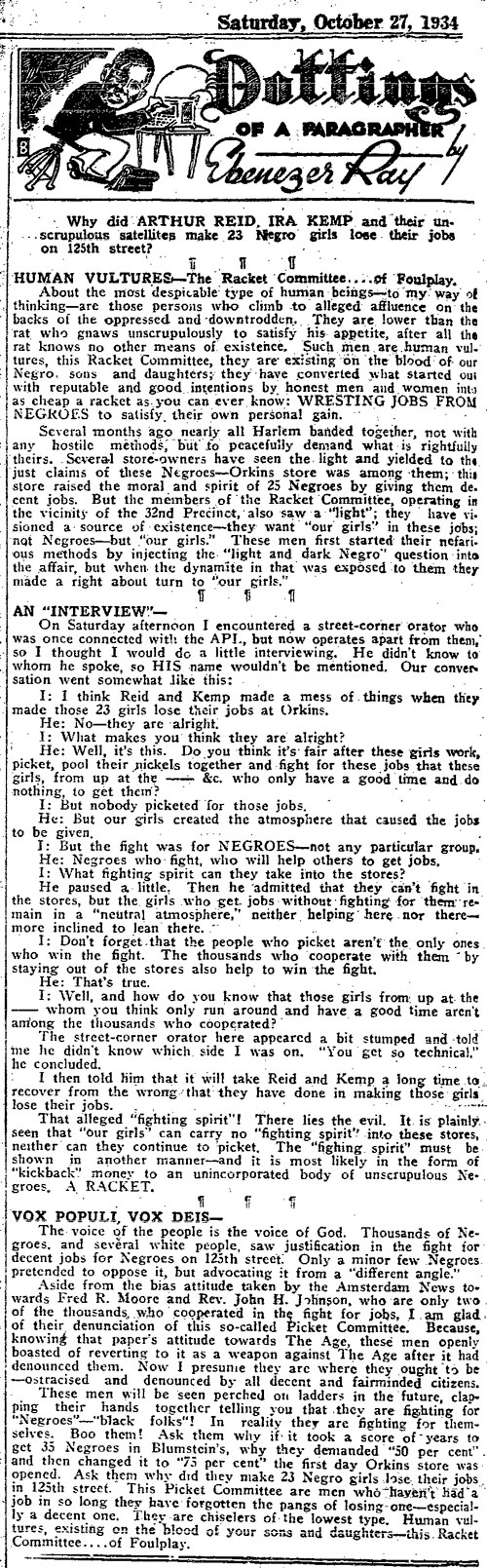 Looking for something fresh to write about on Election Day, I searched my father’s columns for wisdom from the past. A footnote in a column published in the New York Age on November 3, 1934, implored readers to elect “Mrs. Eunice Carter” to the New York State Assembly. The name had a familiar ring. Five […]