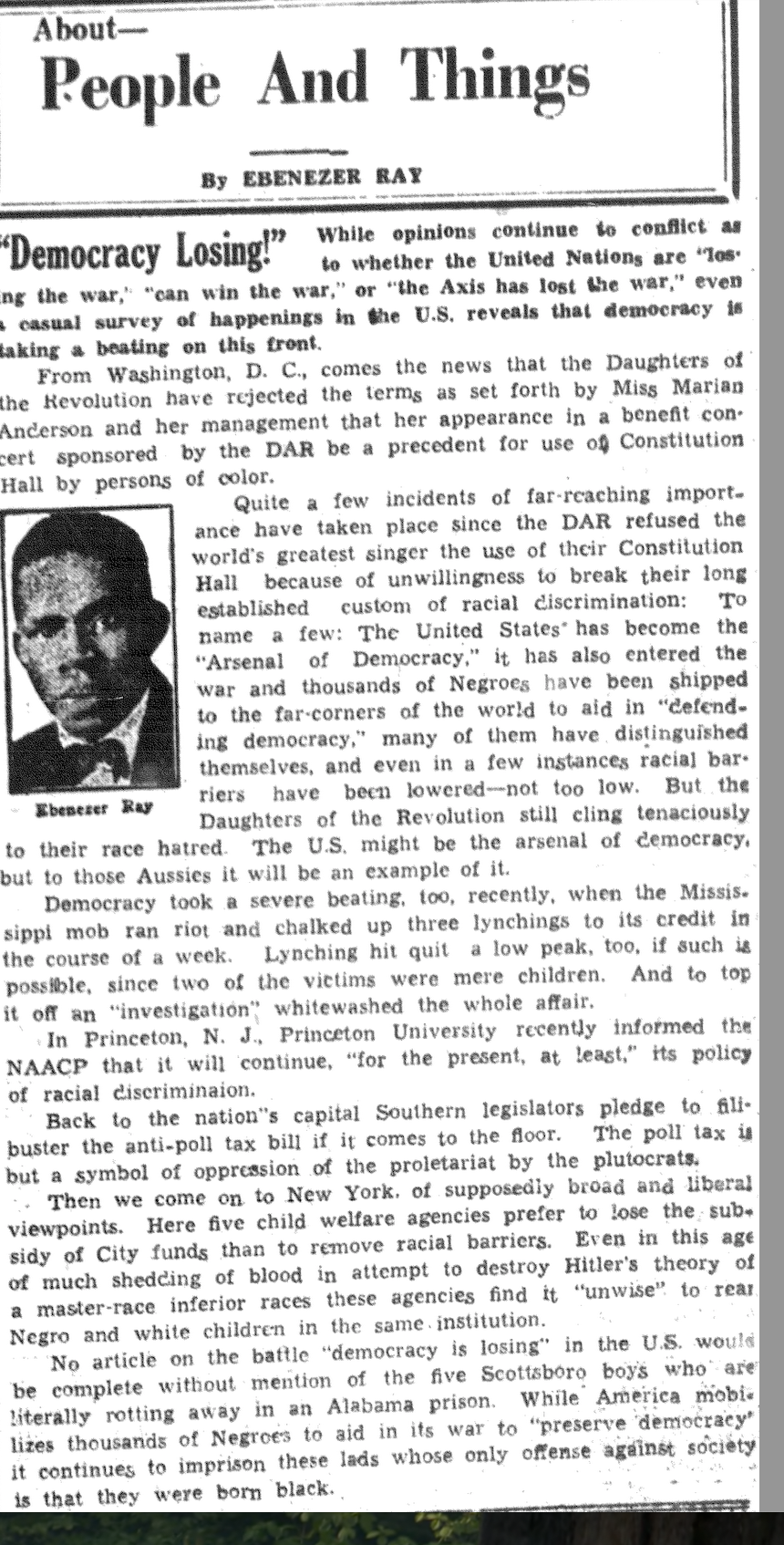 While there has been significant progress since my father wrote this column 83 years ago, “Democracy Losing” is certainly a concept that is currently trending. With President Donald Trump’s takeover of the Kennedy Center for the Performing Arts; Republican efforts to put the final nail in the coffin of the Voting Rights Act; the assault on universities, particularly their commitment to Diversity, Equity and Inclusion; and the violent attacks on people perceived to be undocumented immigrants by Immigration and Customs Enforcement agents based on their race, has eery echoes of the past.