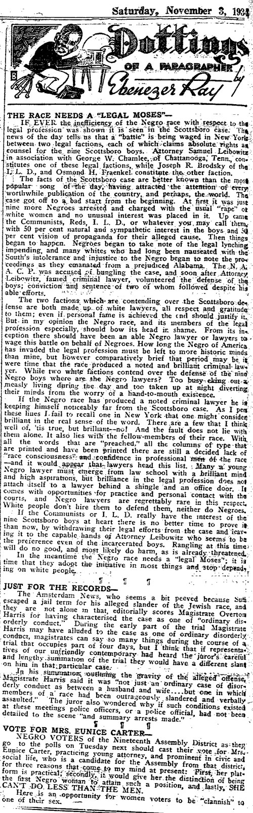 Tags: 1934, african american history, ebenezer ray, elaine ray, genealogy, harlem, scottsboro boys, the new york age