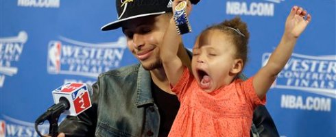 I swoon as I watch her father, Steph Curry, multitask, deftly responding to questions about offensive and defensive strategy on the basketball court, while putting on his daughter’s bracelet and keeping an eye out to make sure she doesn’t run away with the mic or bonk her head.