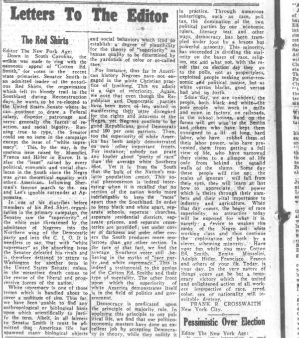 My father and his newspaper, The New York Age, were all in for Mrs. Carter.