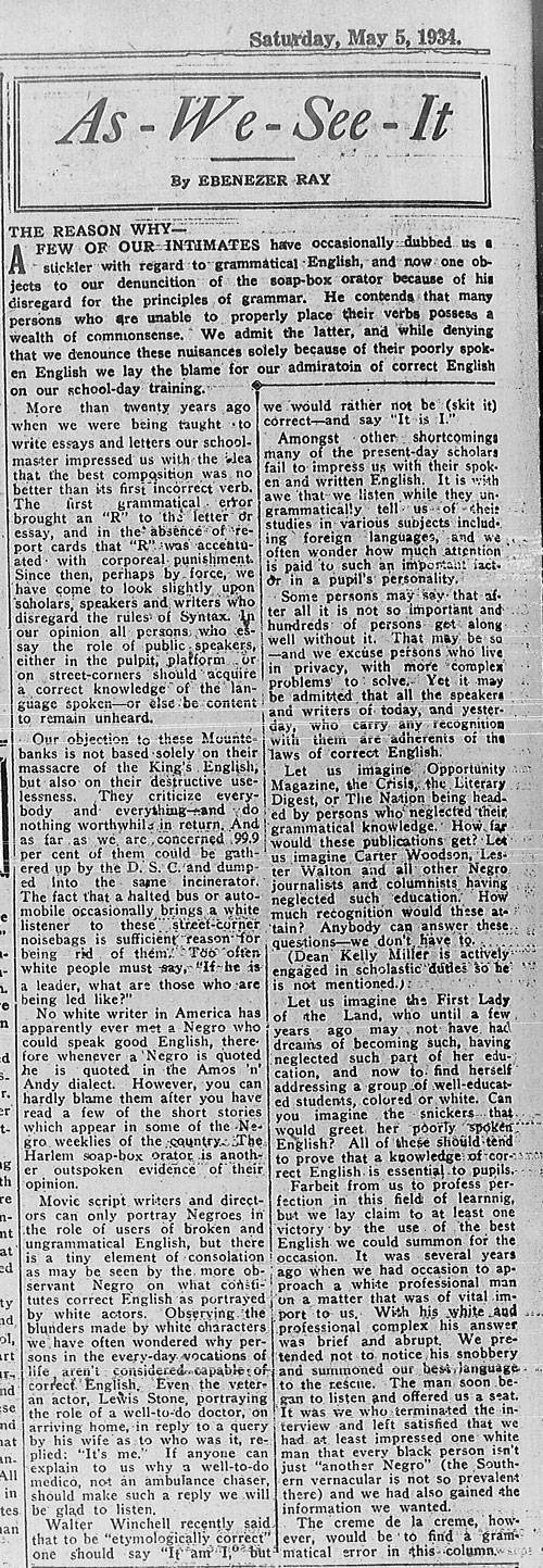 In a column published on the front page of the June 14, 1941 issue of The New York Age, Randolph wrote: