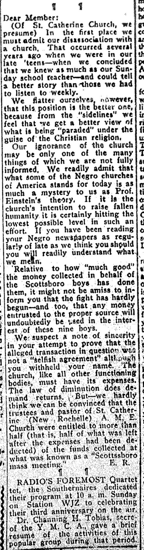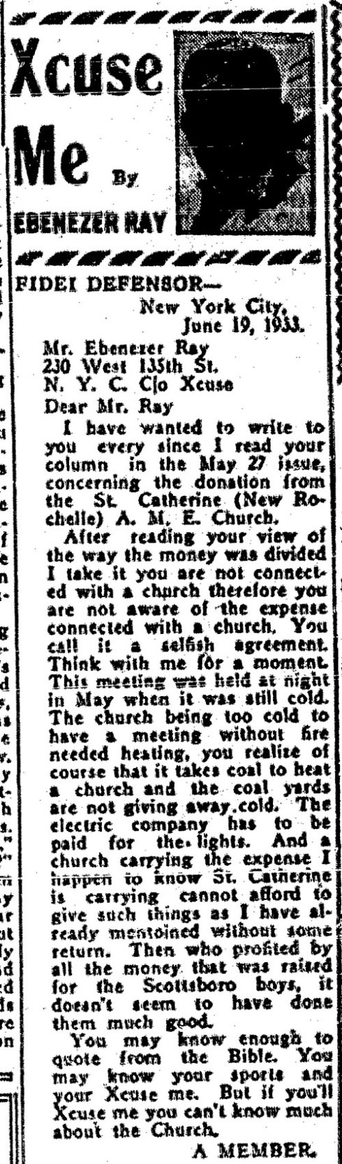 Tags: 1933, african american history, black history, christianity, ebenezer ray, elaine ray, genealogy, harlem, journalism, new york, religion, The Great Depression, the new york age